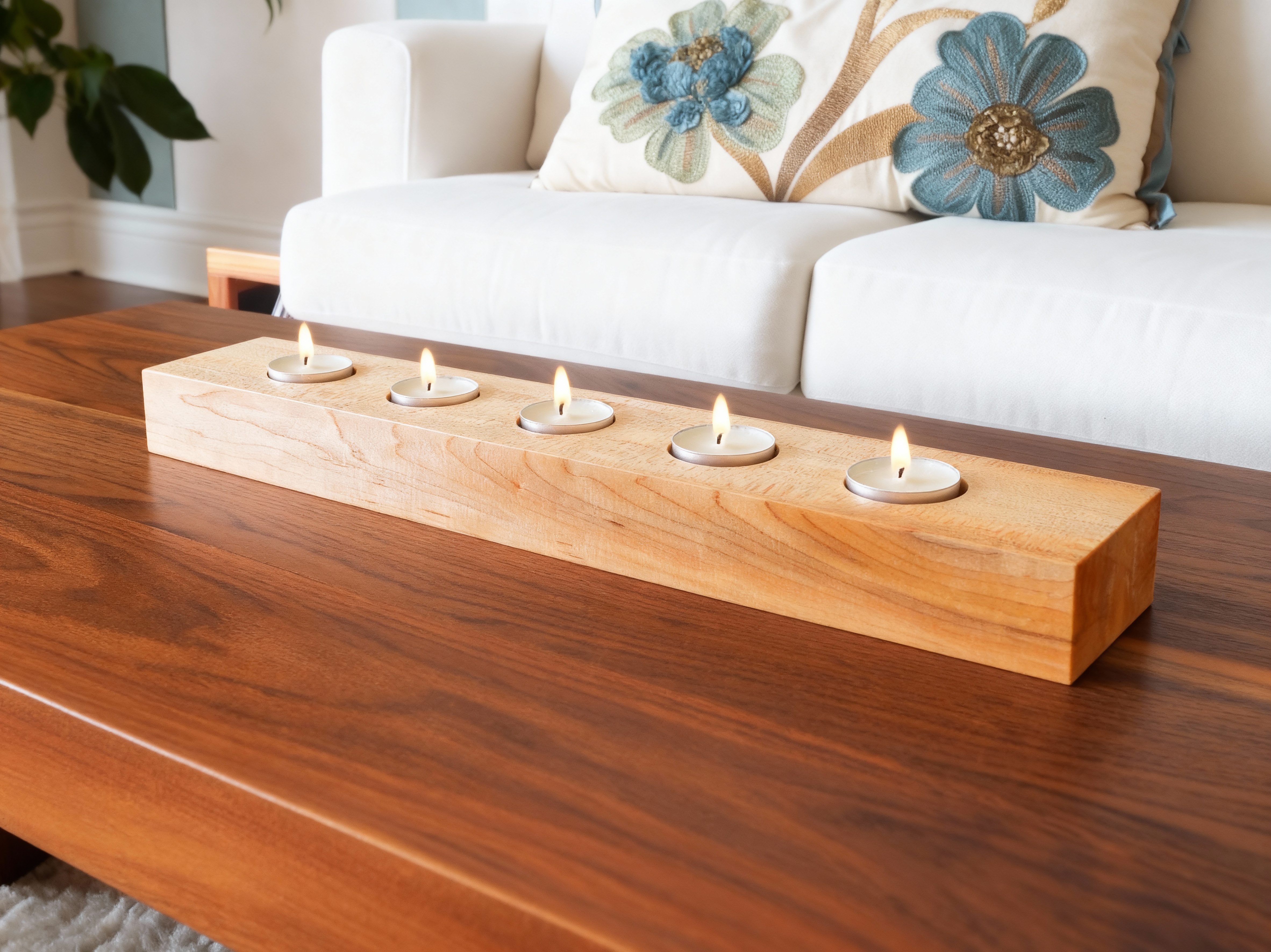 White oak tea light holder.