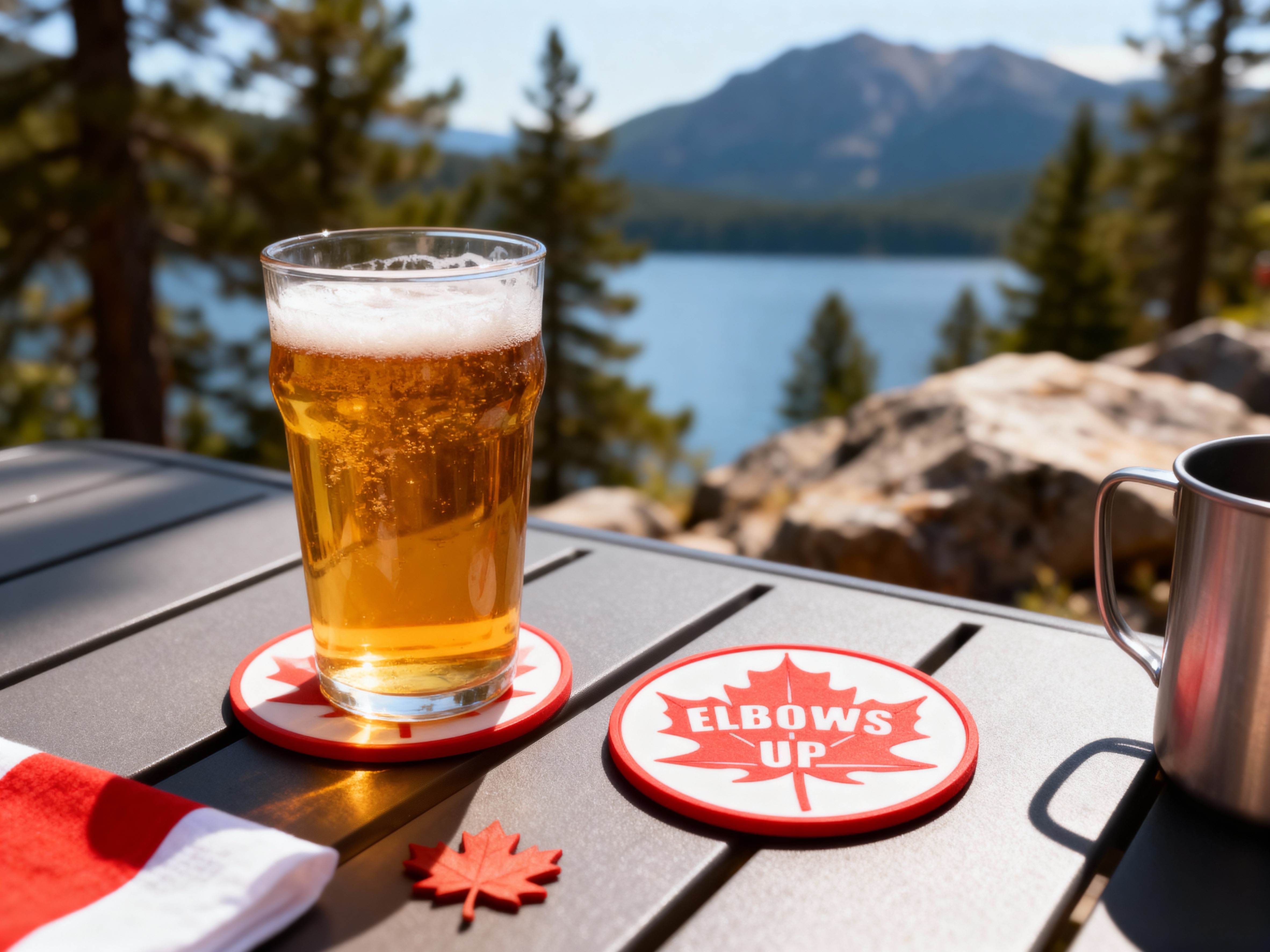 Raise your glass with pride on Elbows Up coasters — bold, durable, and unapologetically Canadian!