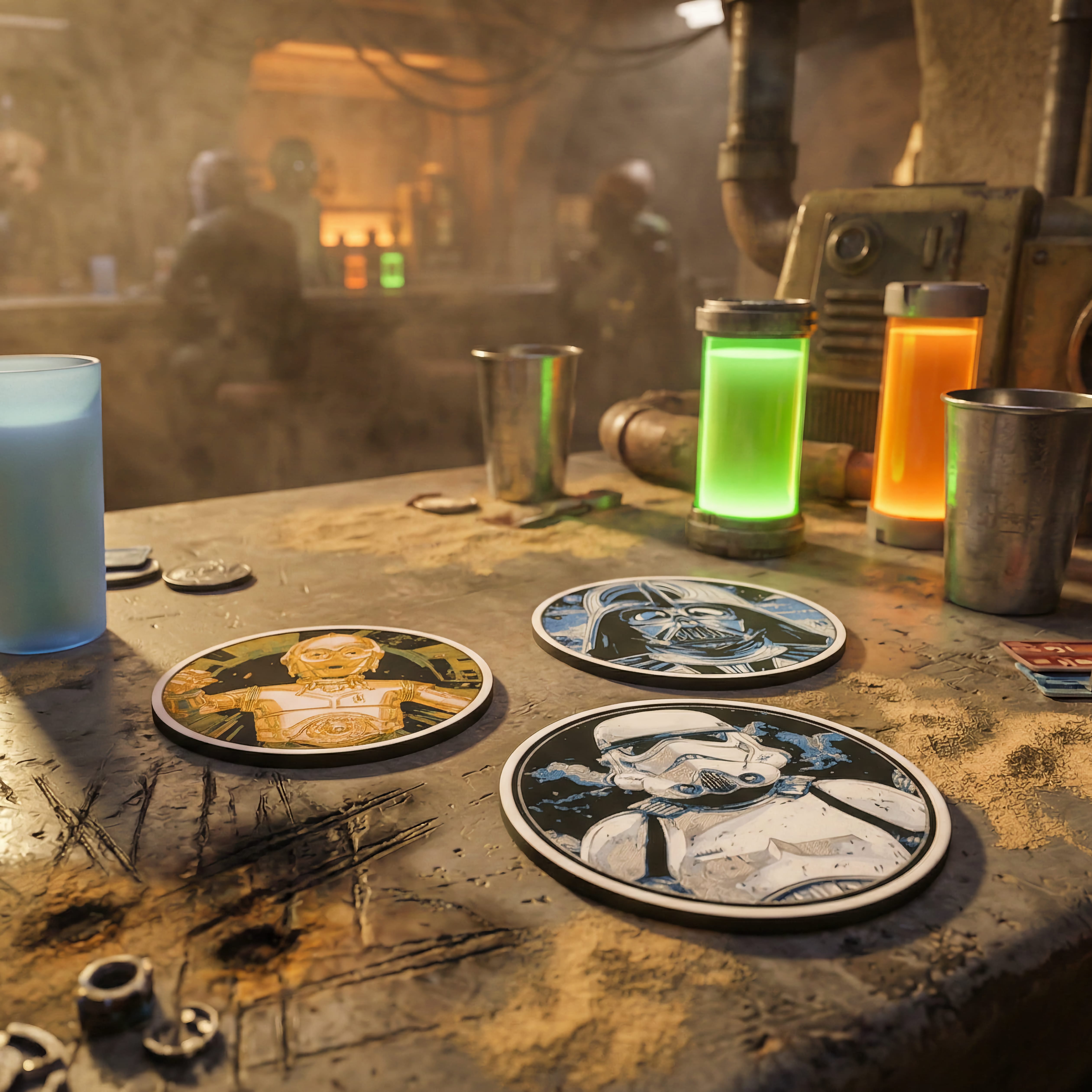Shield your surfaces in Star Wars style with durable 3D printed coasters featuring iconic designs—perfect for any fan’s drinks!