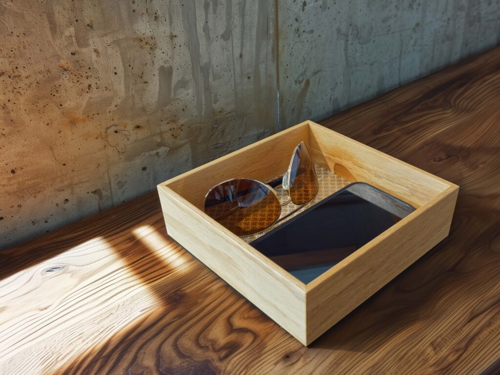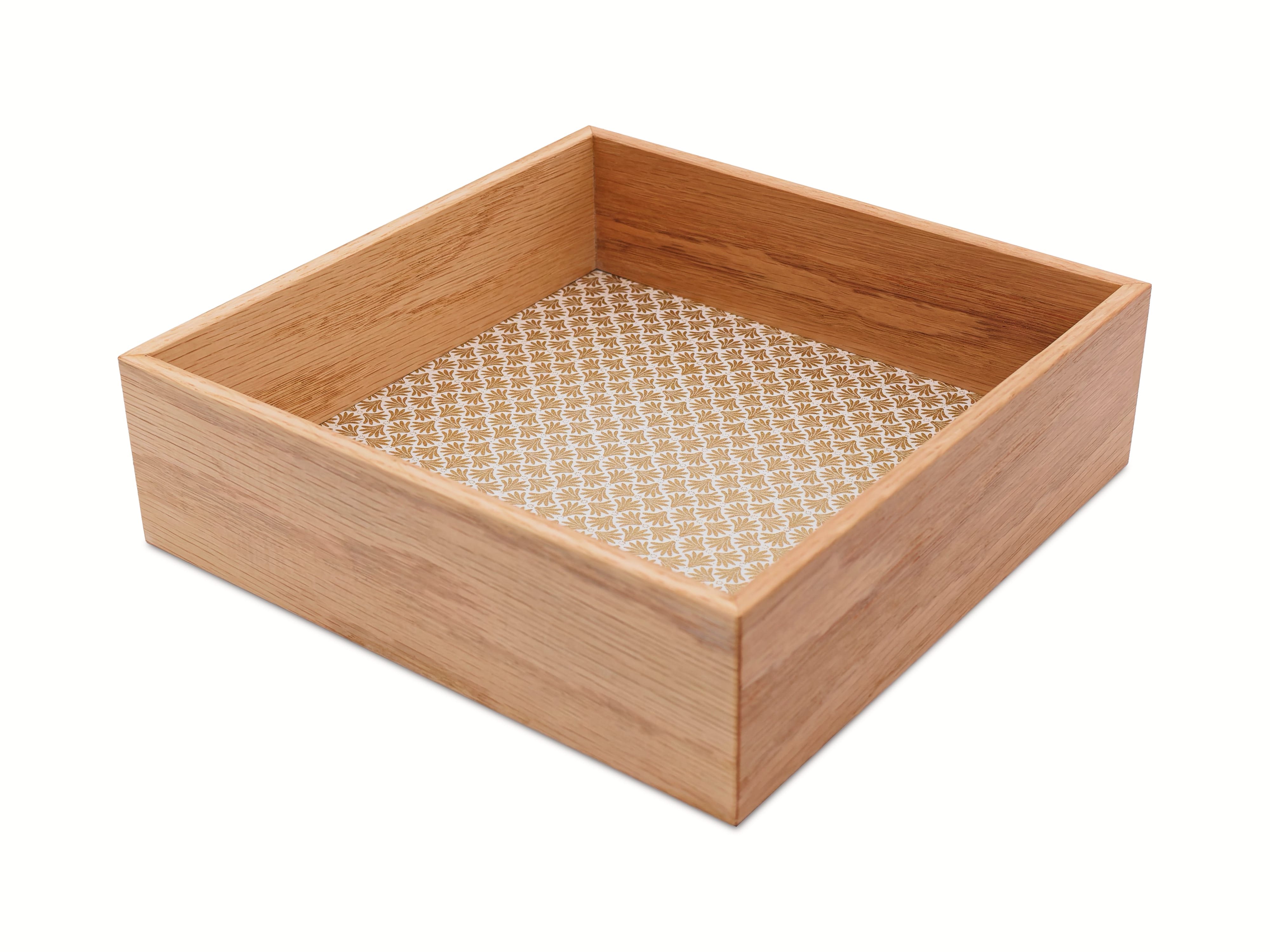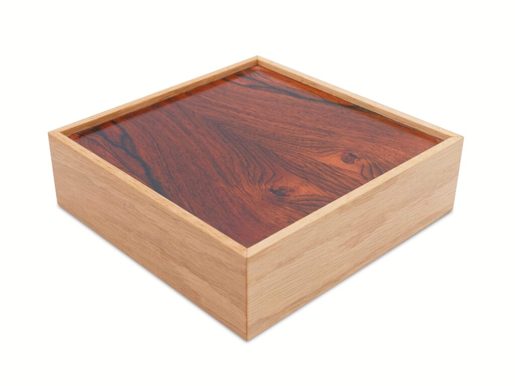 Small oak butler tray with Japanese Chiyogami paper and genuine reclaimed rosewood base.